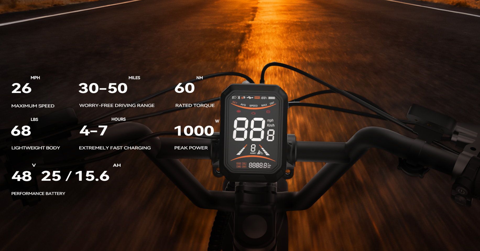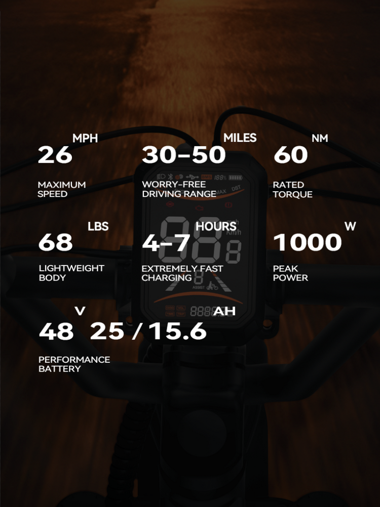 | Speed&Range | Maximum speed 42km/h(26Mph) |